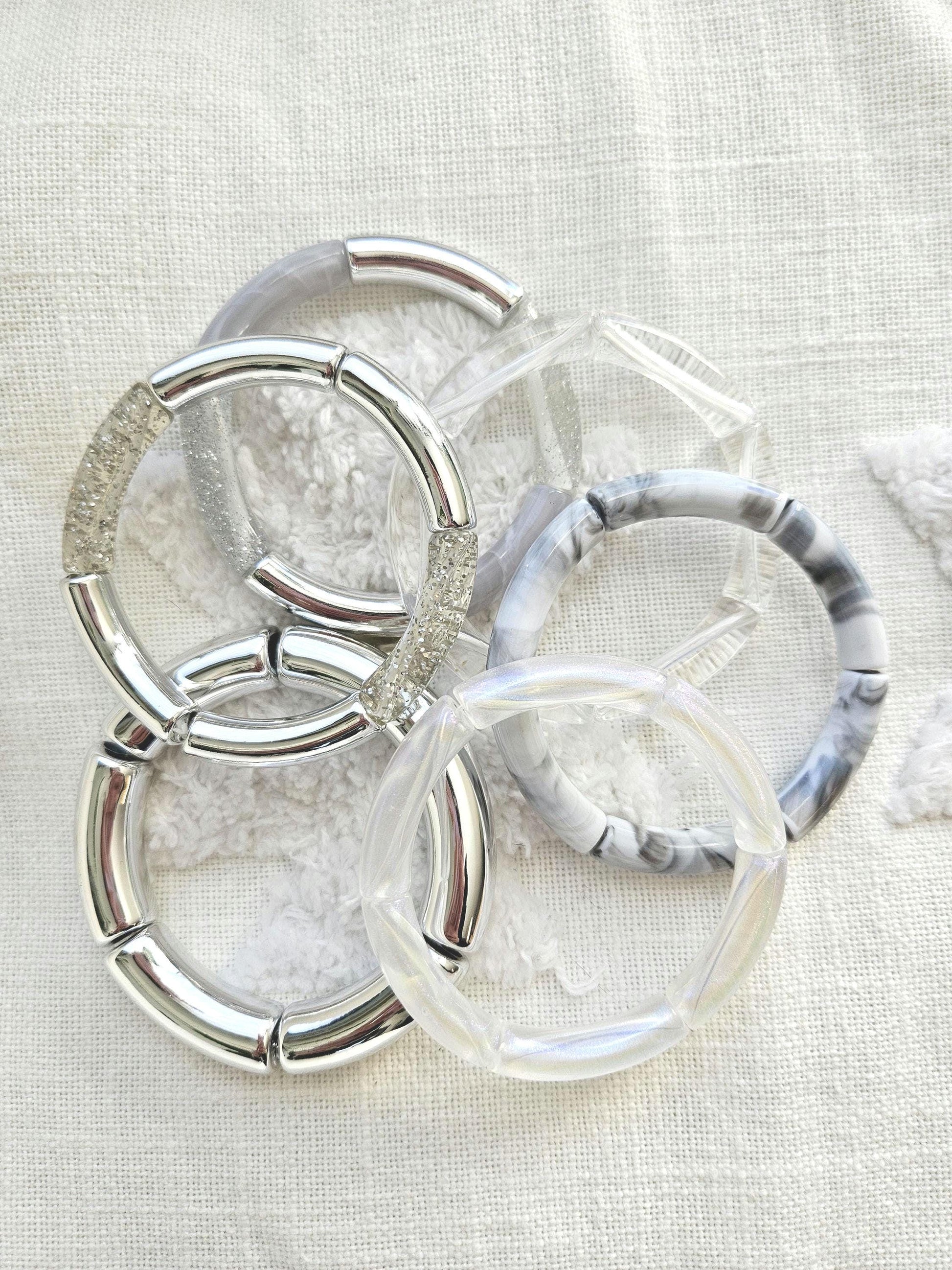 🌟Tendance : Bracelets joncs tubes perles acryliques incurvées.