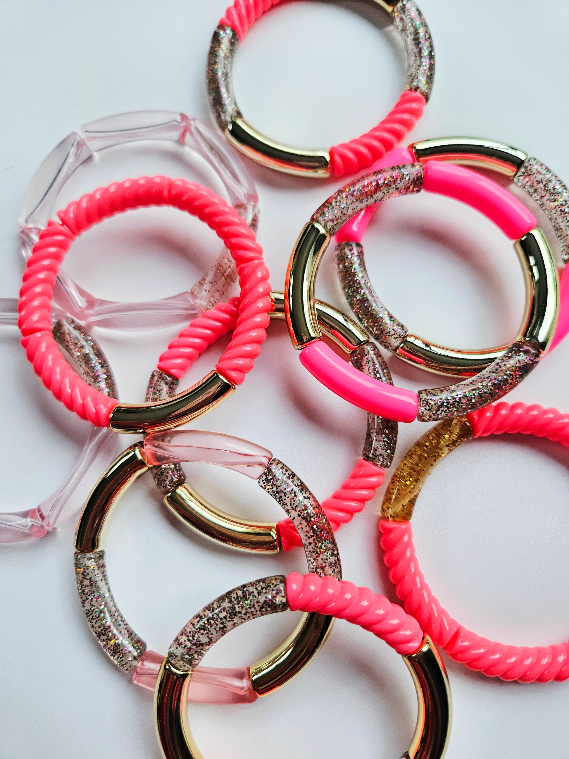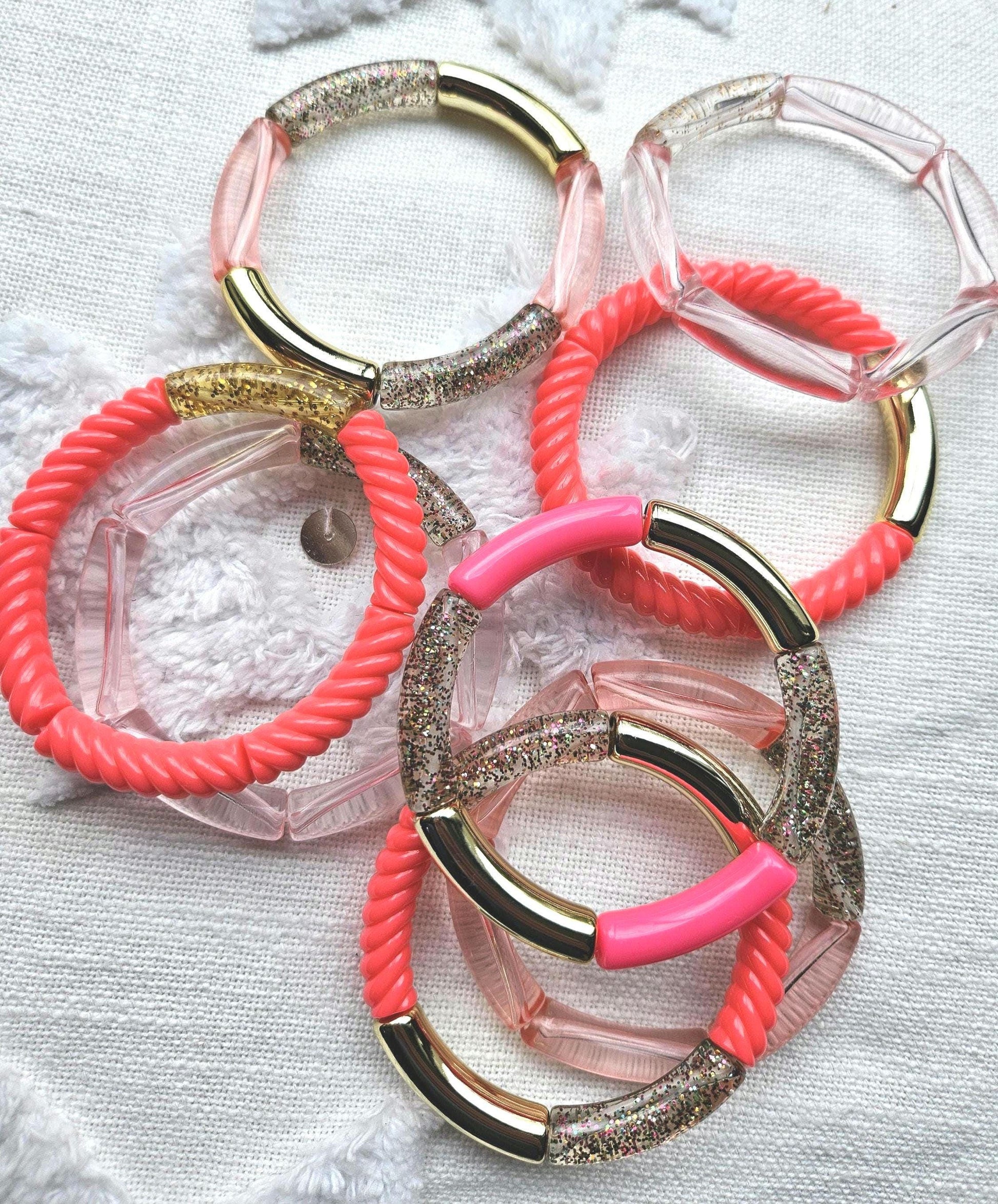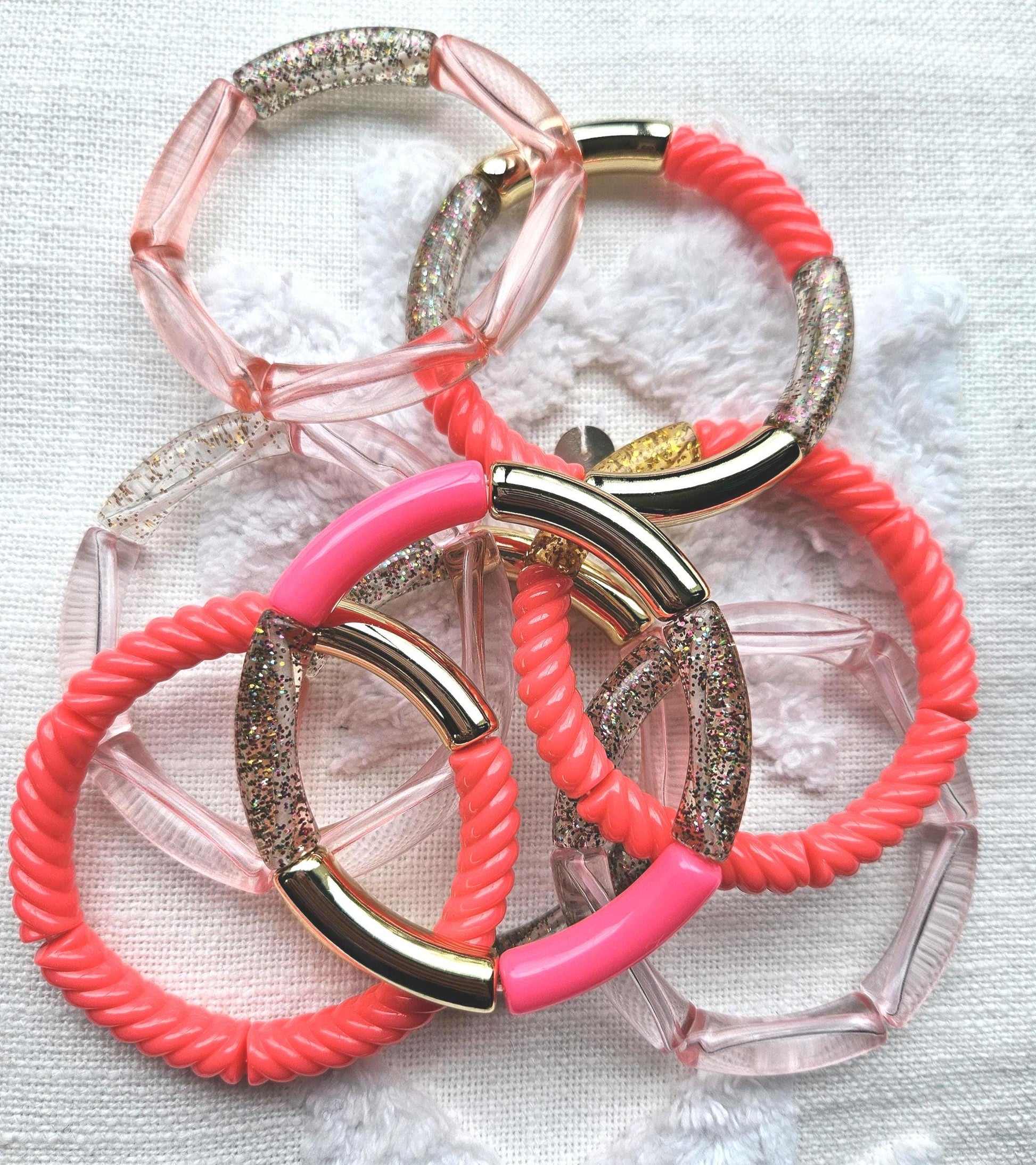 🌟Tendance : Bracelets joncs tubes perles acryliques incurvées.