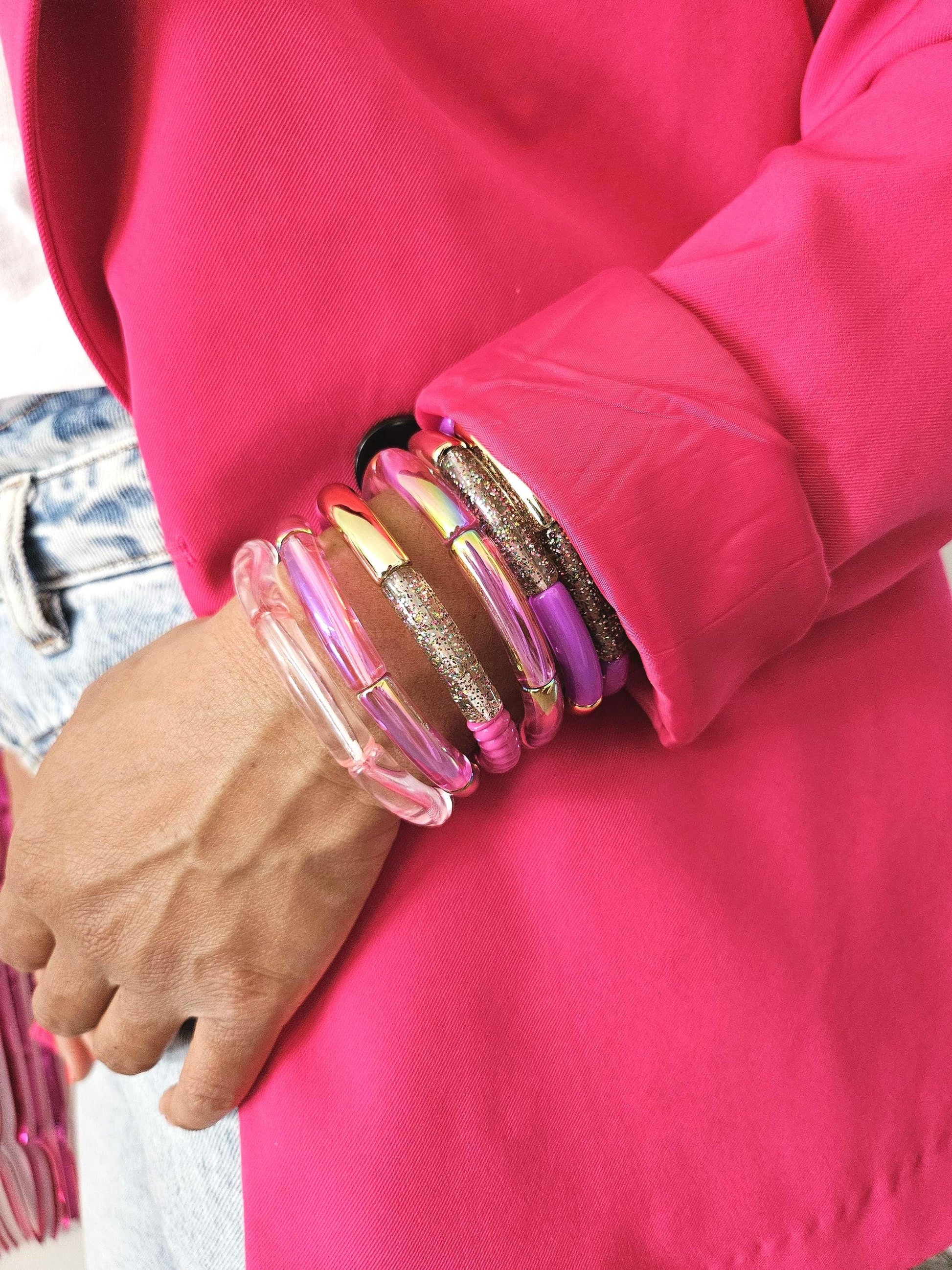 🌟Tendance : Bracelets joncs tubes perles acryliques incurvées.