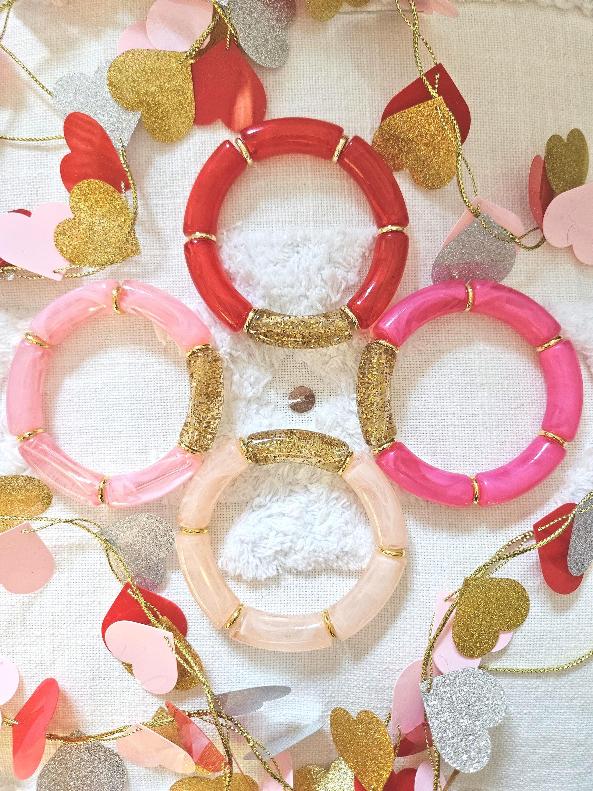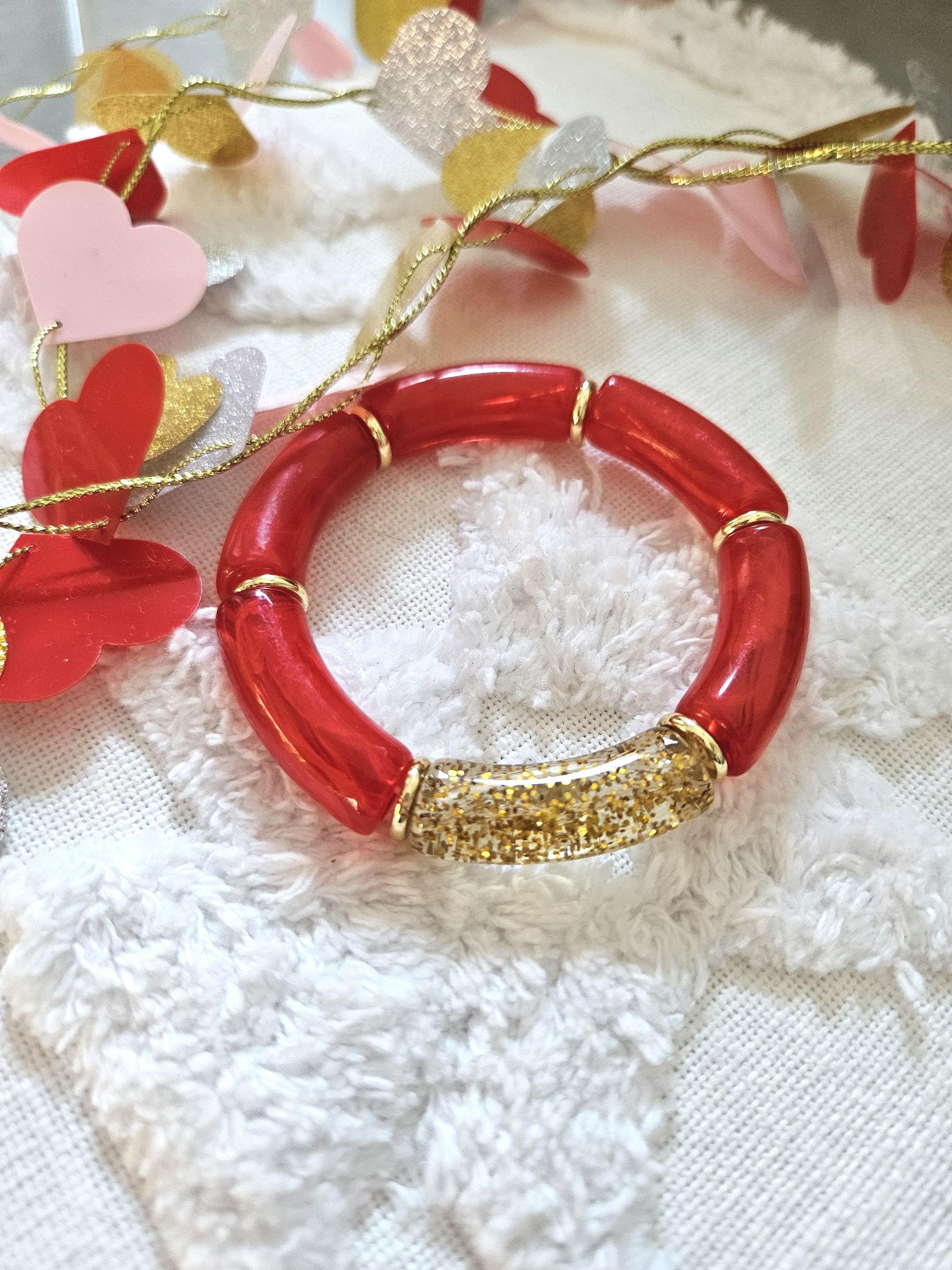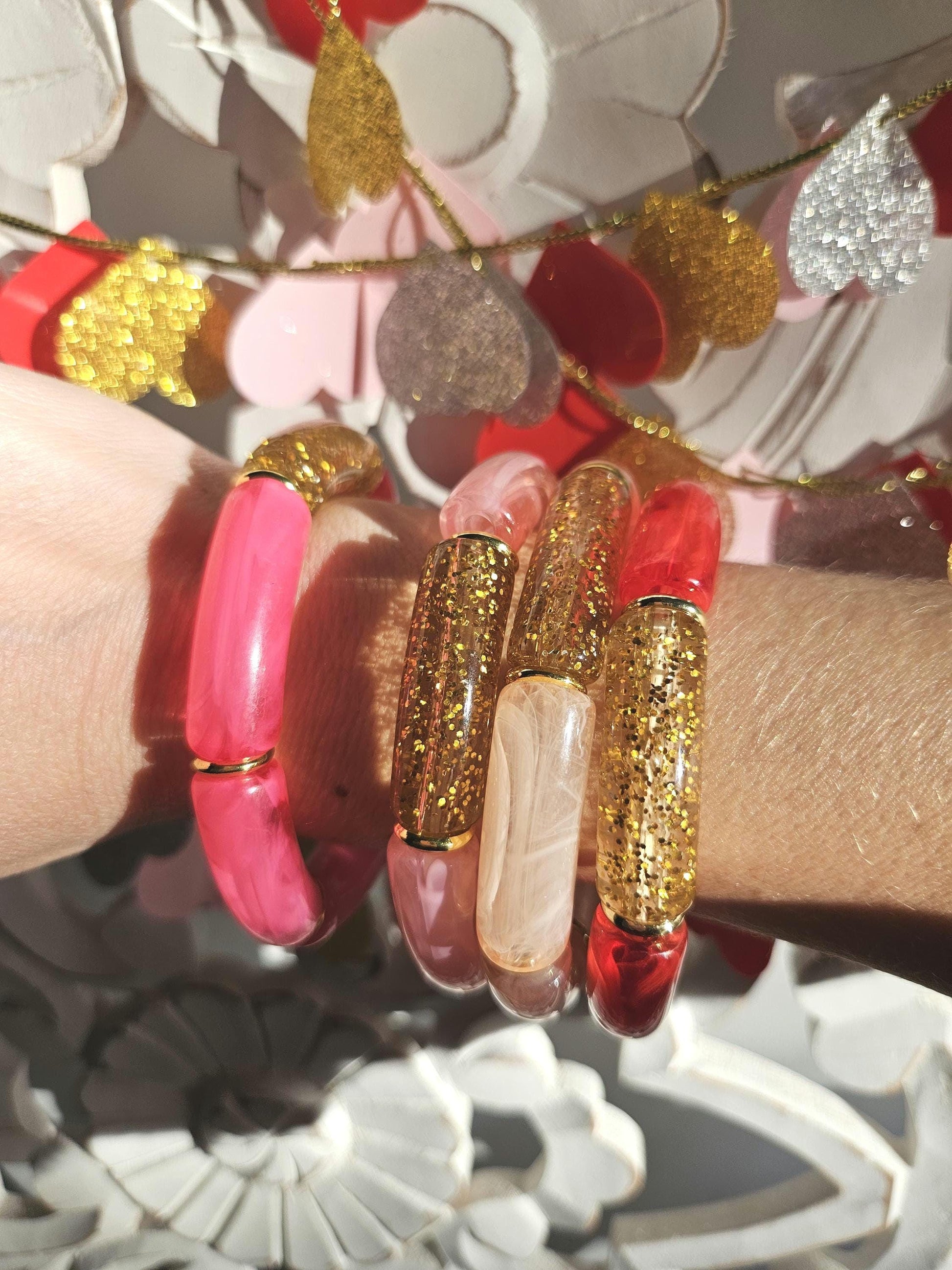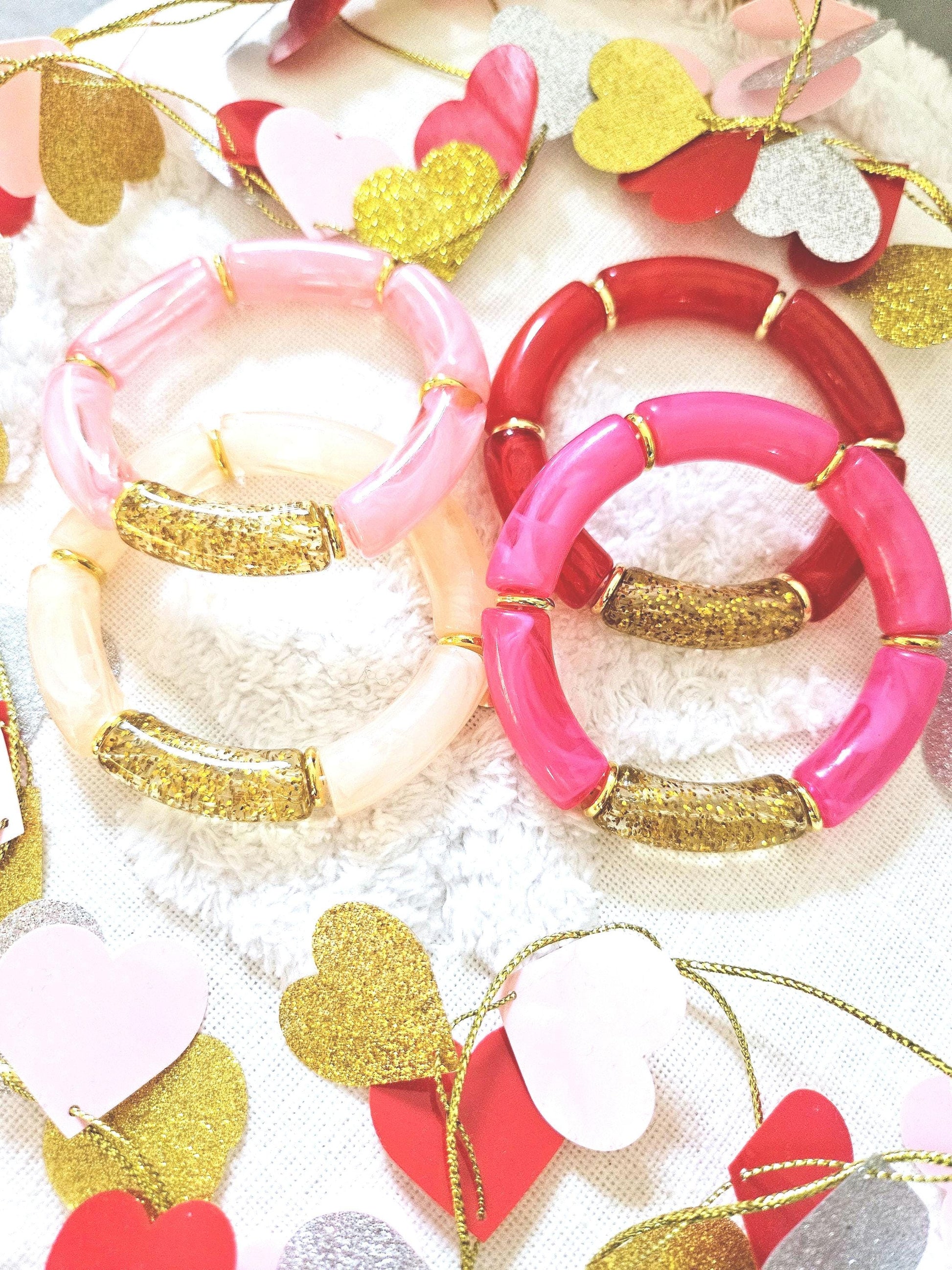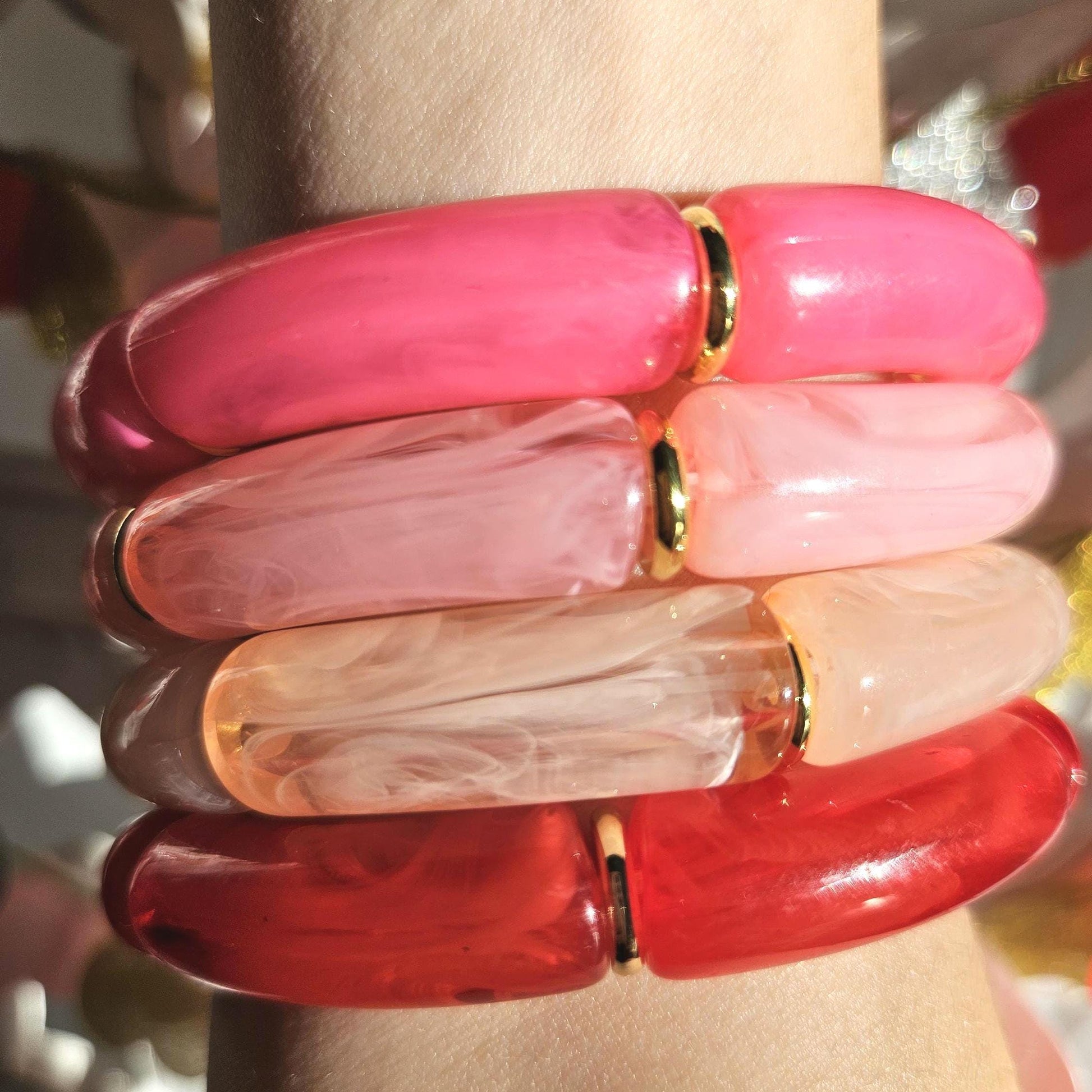 🌟Tendance : Bracelets joncs tubes perles acryliques incurvées et perles d’espacement en laiton.