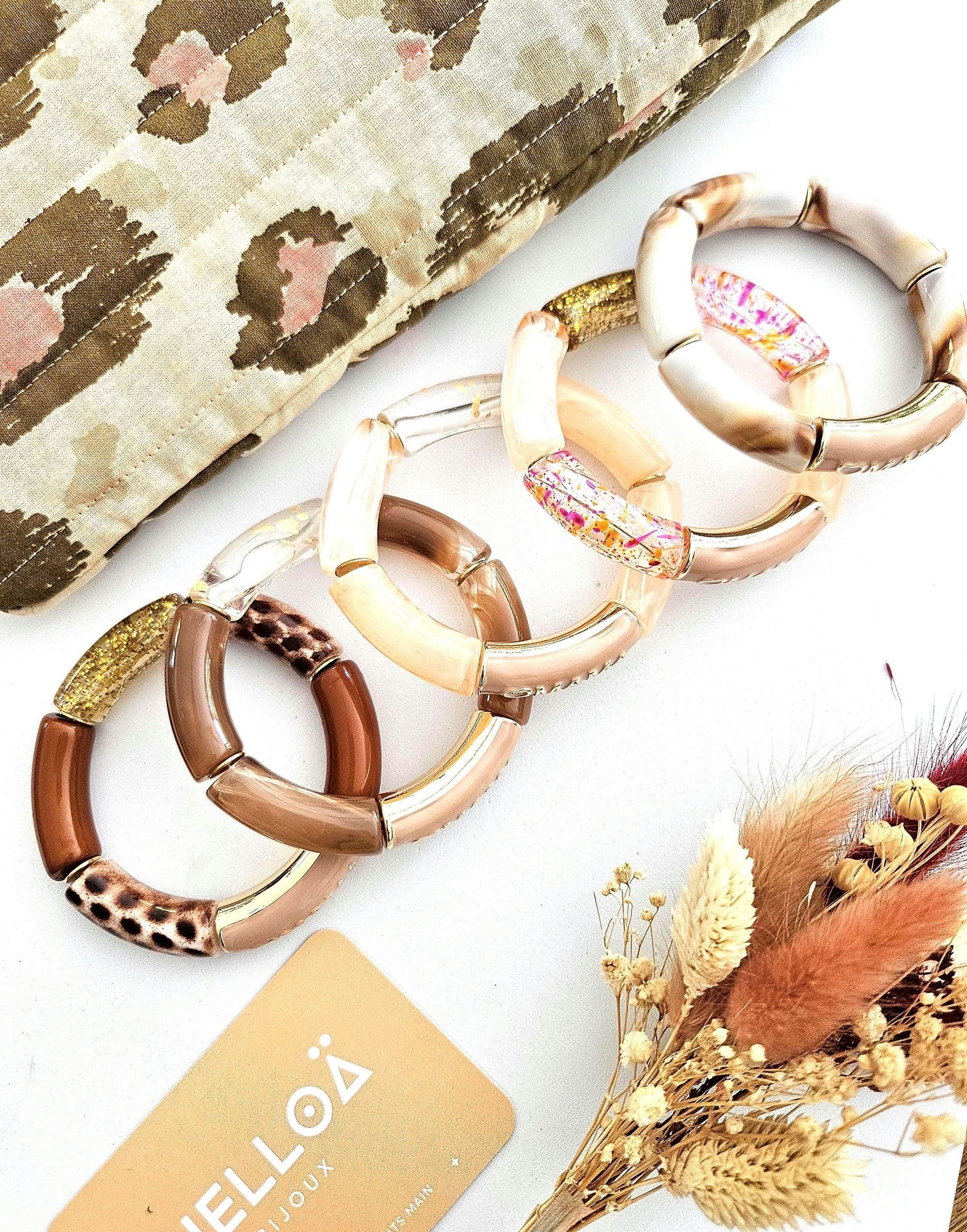 ANNA MAMA | Jonc acrylique perles tubes incurvées peach
