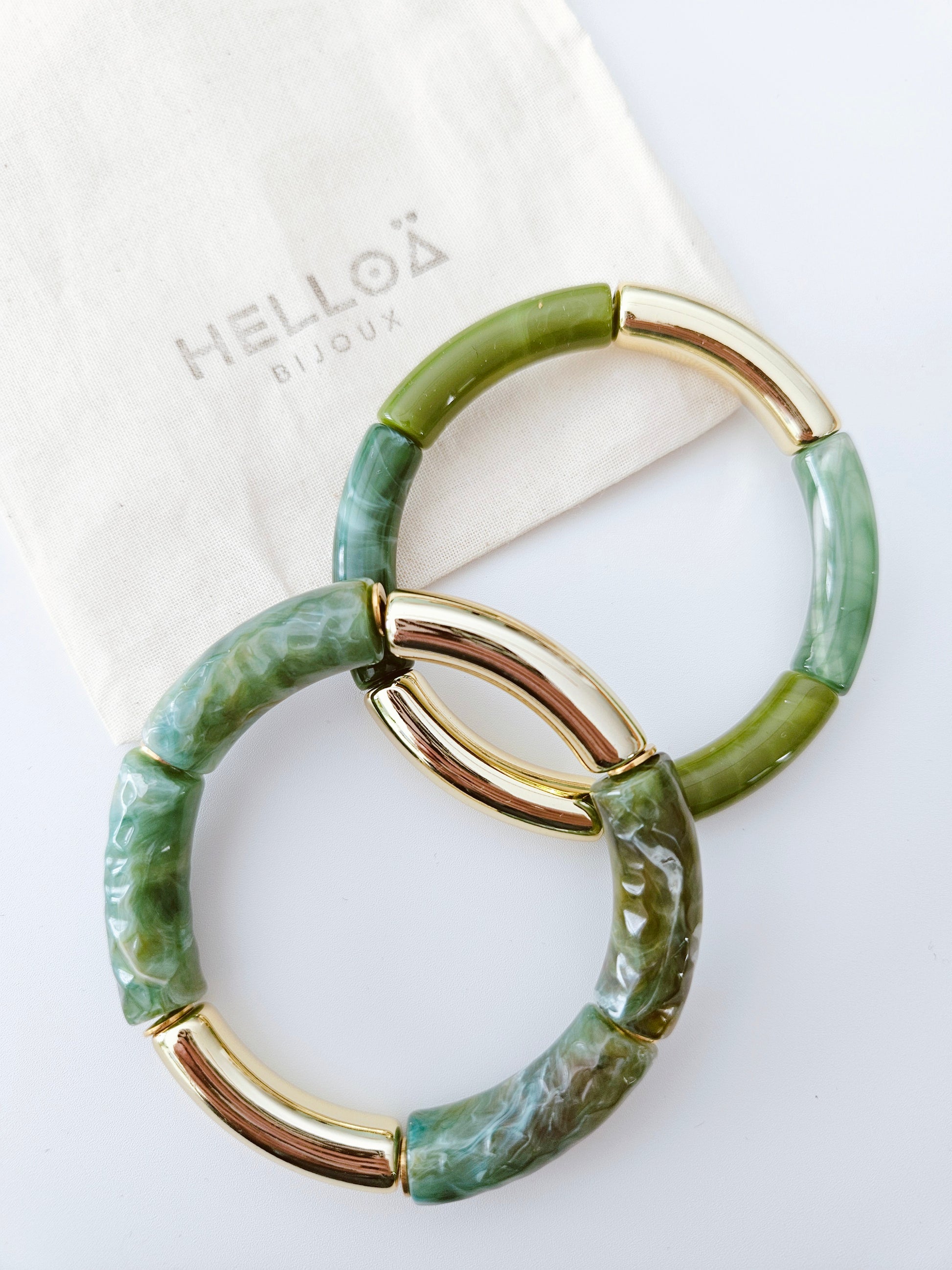 🌟Tendance : Bracelets joncs tubes perles acryliques incurvées.